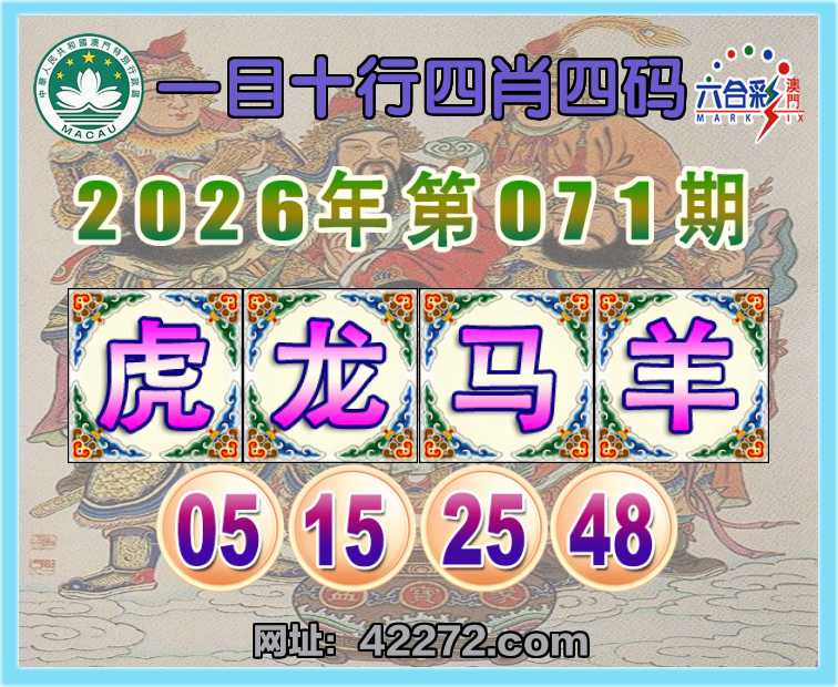 071期: 『一目十行』 四肖四码【虎龙马】【05.15.25.48】开:羊48