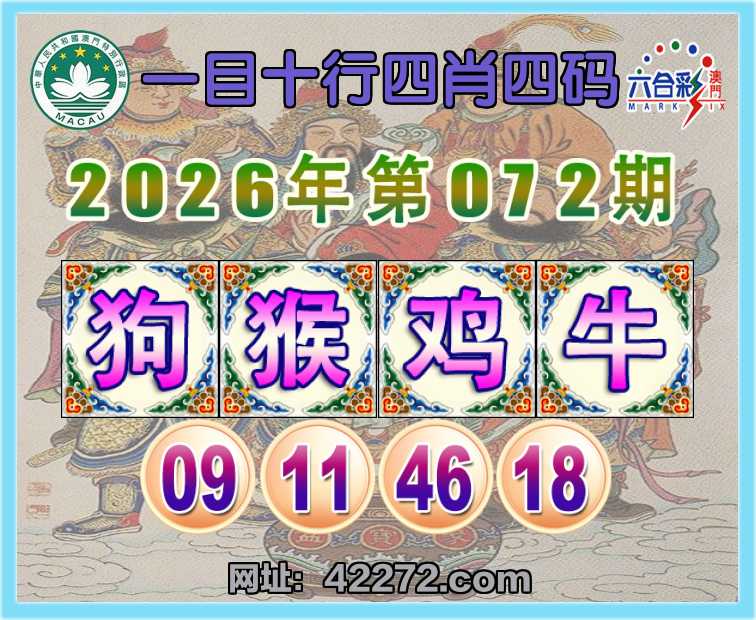 072期: 『一目十行』 四肖四码【狗猴牛】【09.11.46.18】开:鸡46
