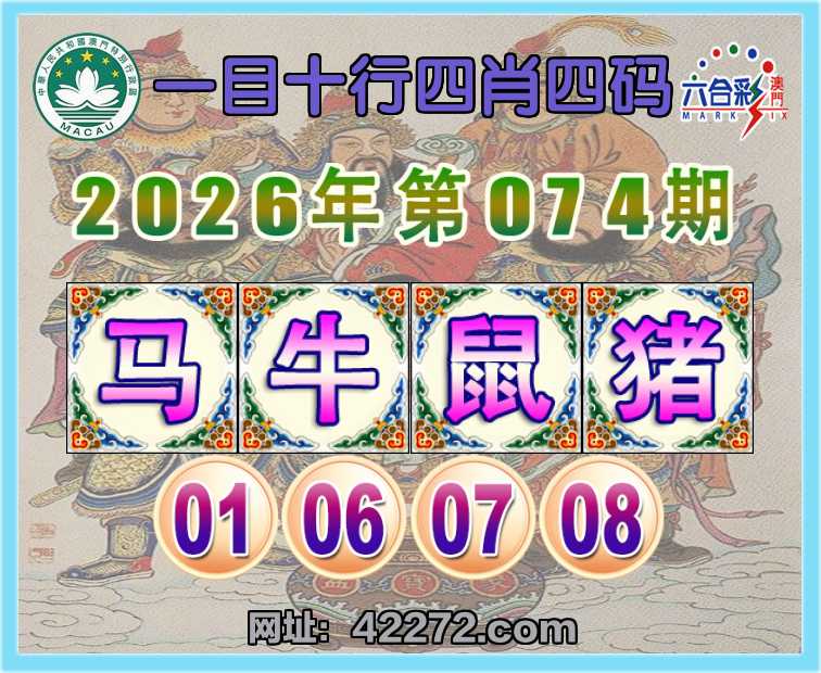 074期: 『一目十行』 四肖四码【马牛鼠猪】【01.06.07.08】开:鸡10
